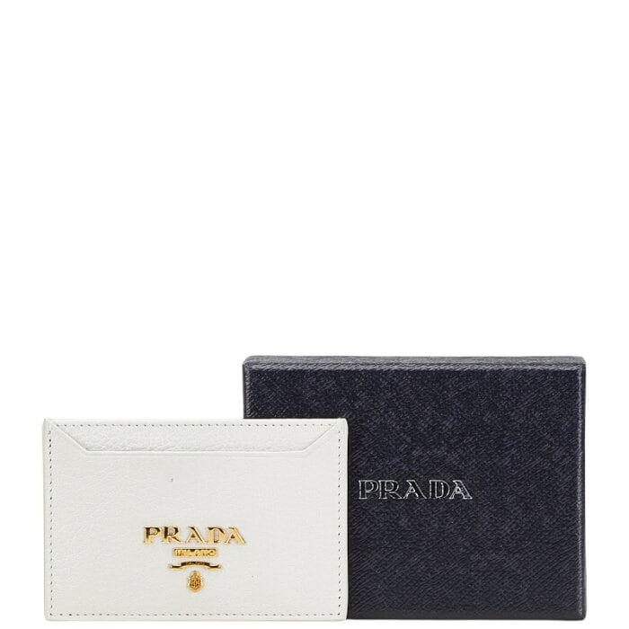 プラダ ロゴ カードケース ホワイト レザー レディース PRADA 【中古】