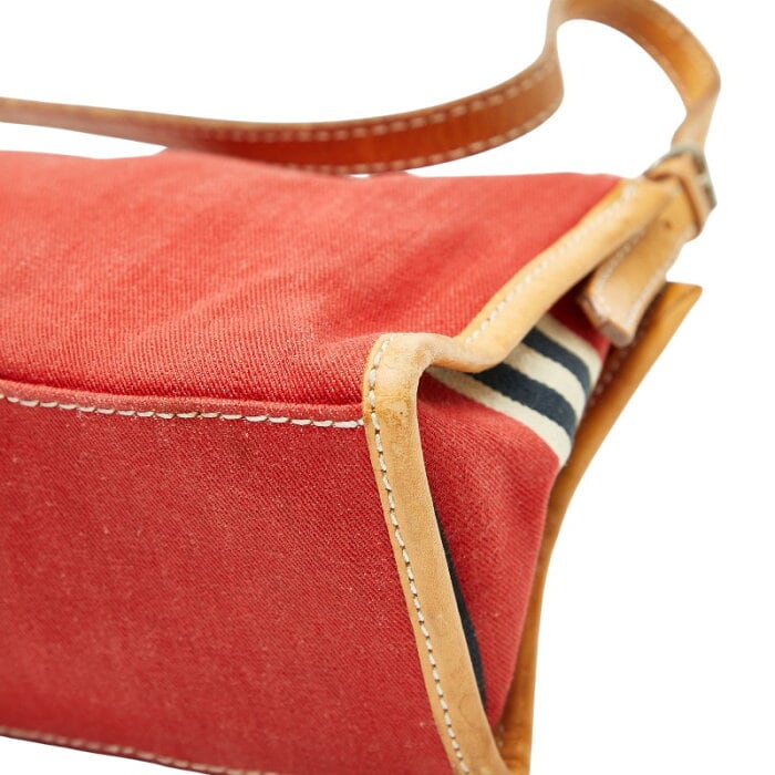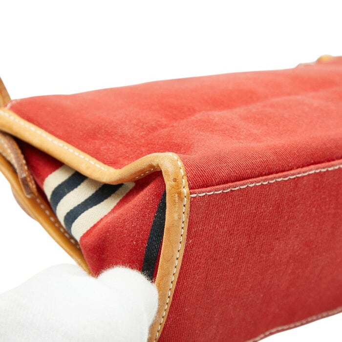 バーバリー ブルーレーベル ハンドバッグ ポーチ レッド マルチカラー キャンバス レザー レディース BURBERRY 【中古】