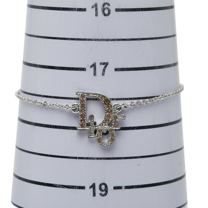 クリスチャンディオール ロゴ ラインストーン ブレスレット シルバー ピンク メタル レディース Christian Dior 【中古】