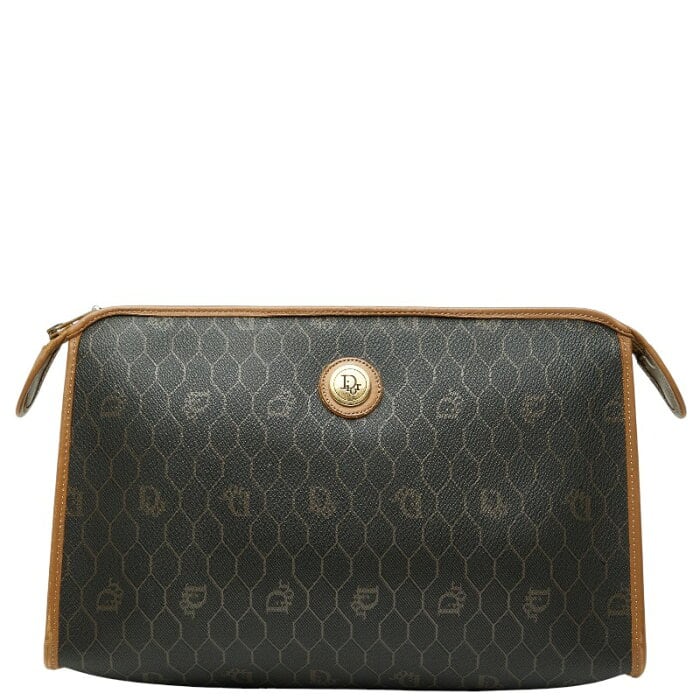 ディオール ハニカム クラッチバッグ ブラック ブラウン PVC レザー レディース Dior 【中古】