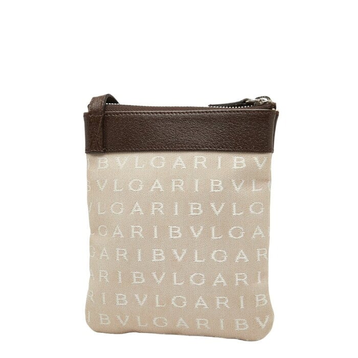 ブルガリ ロゴマニア ポシェット ショルダーバッグ ベージュ ブラウン キャンバス レザー レディース BVLGARI 【中古】