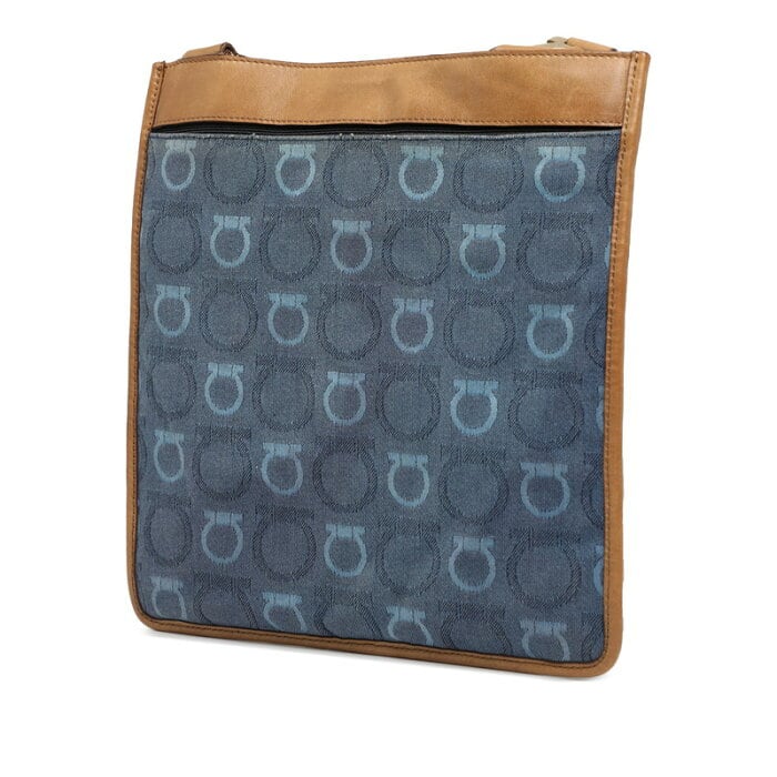 サルヴァトーレフェラガモ ガンチーニ ショルダーバッグ ブルー ブラウン キャンバス レザー レディース Salvatore Ferragamo 【中古】