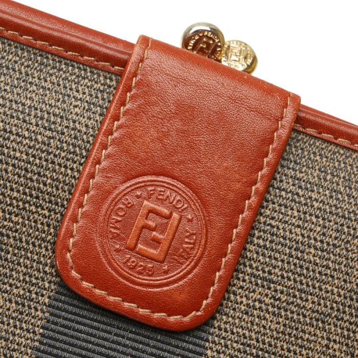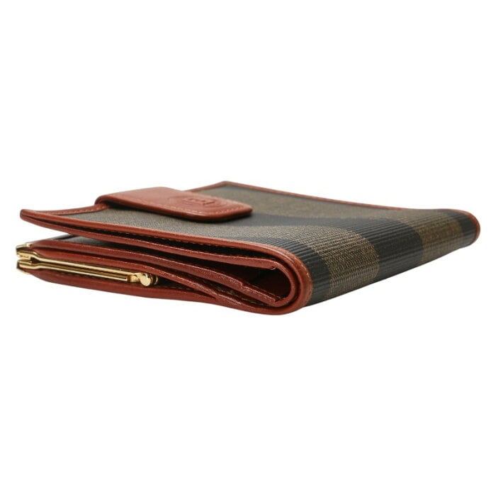 フェンディ ペカン 二つ折り財布 カーキ ブラウン PVC レザー レディース FENDI 【中古】