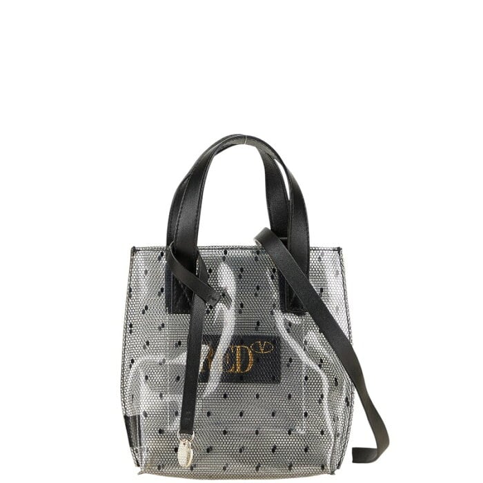 ヴァレンティノ ポワンデスプリ ハンドバッグ ショルダーバッグ 2WAY ブラック クリア ビニール レザー レディース VALENTINO 【中古】
