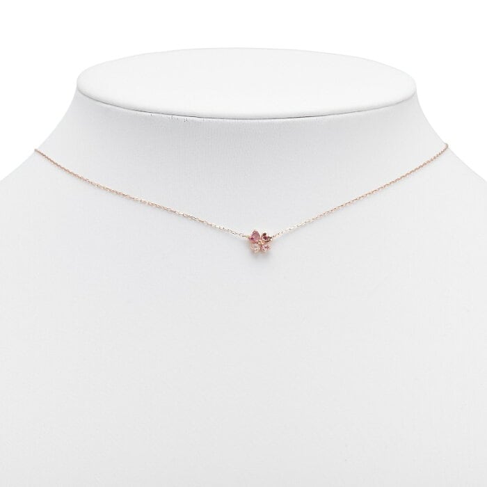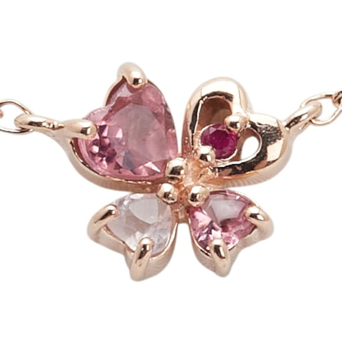 ヨンドシー K10PG ピンクゴールド トルマリン ハート クローバー モチーフ ネックレス レディース 4℃ 【中古】