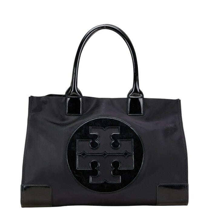 トリーバーチ ロゴ トートバッグ ハンドバッグ ブラック パテントレザー ナイロン レディース Tory Burch 【中古】