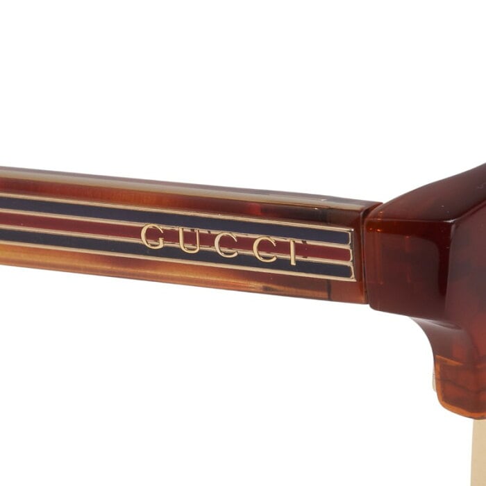 グッチ ロゴ UVカット ハーフリム クリングスタイプ アイウェア サングラス GG0382S ブラウン プラスチック レディース GUCCI 【中古】