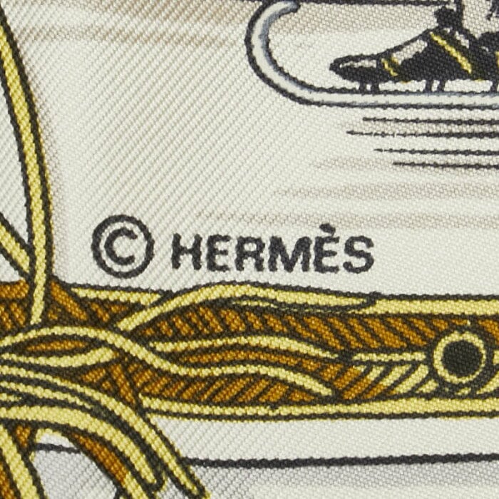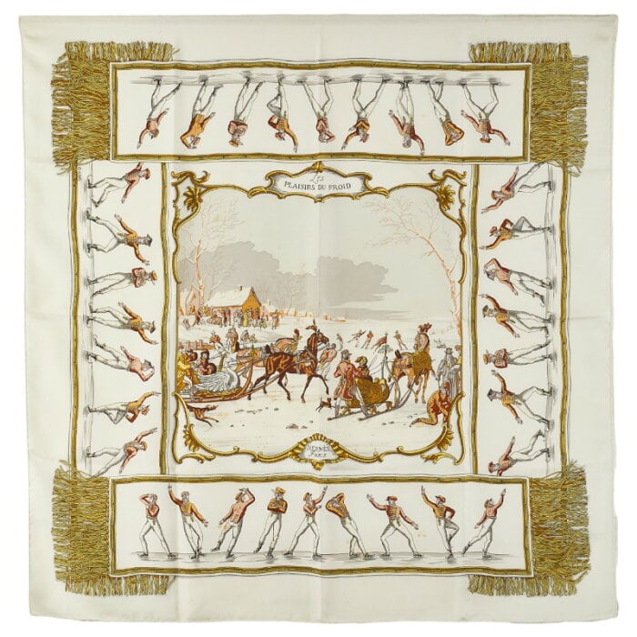 エルメス カレ90 LES PLAISIRS DU FROID 氷上の喜び スカーフ ホワイト ゴールド マルチカラー シルク レディース HERMES 【中古】