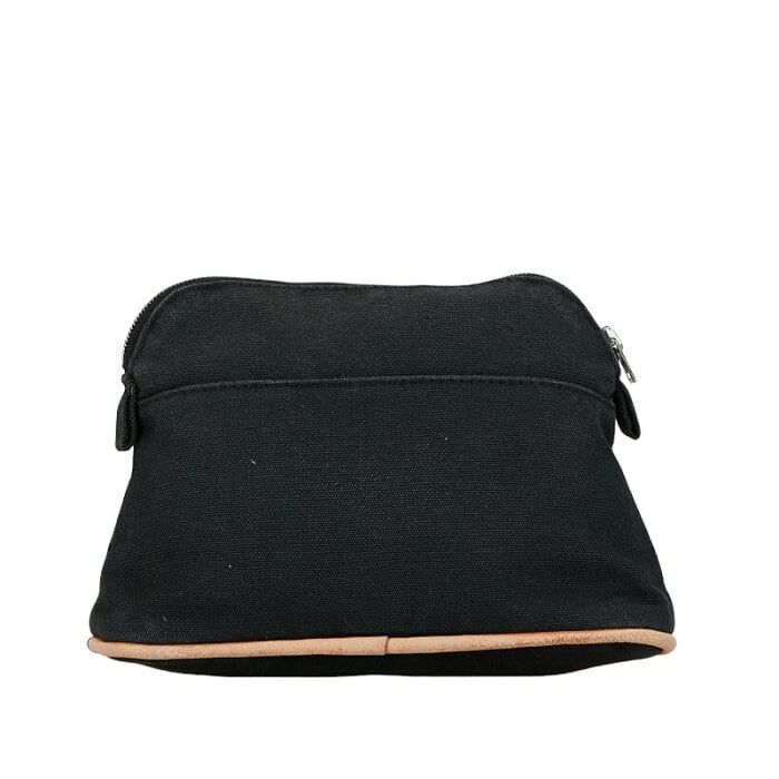 エルメス ボリードポーチ シルバー金具 ポーチ ブラック キャンバス レザー レディース HERMES 【中古】