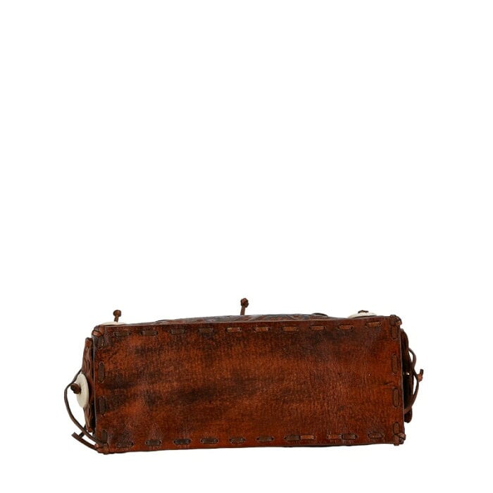 カービングトライブス マエストラS ハンドバッグ ブラウン レザー レディース 【中古】