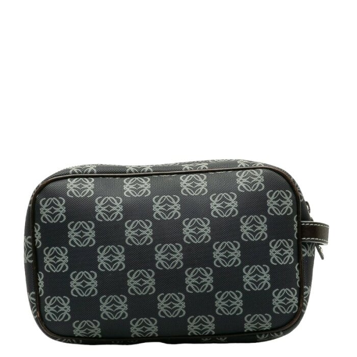 ロエベ アナグラム ポーチ ネイビー ブラウン PVC レザー レディース LOEWE 【中古】