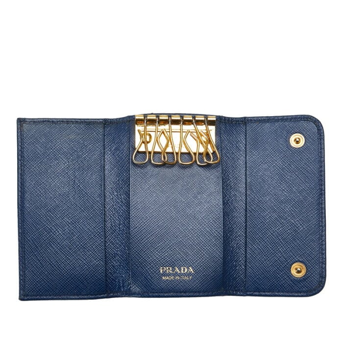 プラダ サフィアーノ キーケース 1PG222 ブルー レザー レディース PRADA 【中古】