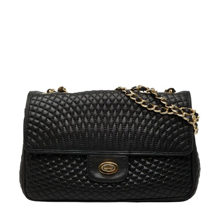 バリー ロゴ キルティング チェーン ショルダーバッグ ブラック レザー レディース BALLY 【中古】