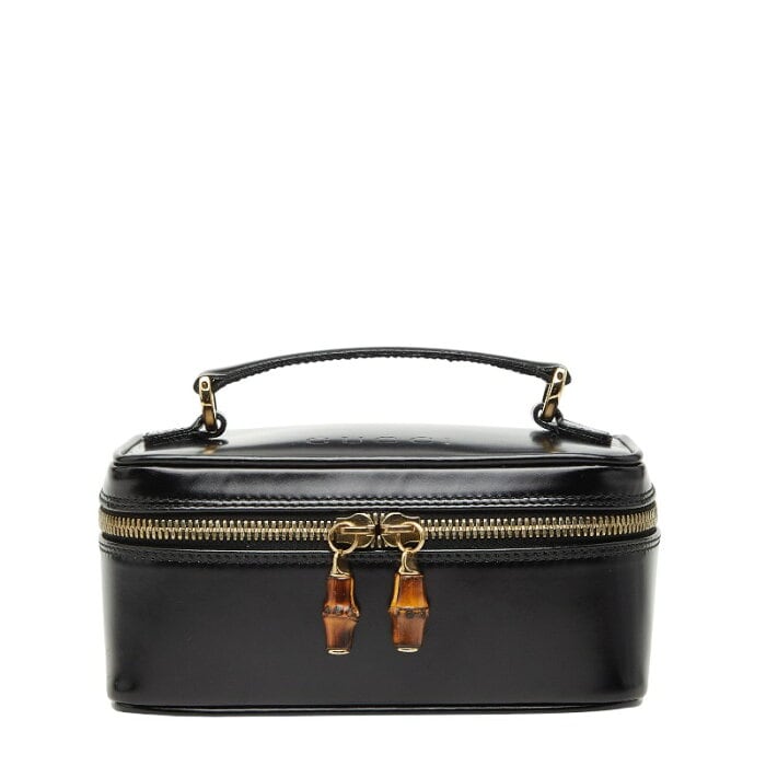 グッチ バンブー バニティバッグ ハンドバッグ 032 1956 0151 ブラック レザー レディース GUCCI 【中古】