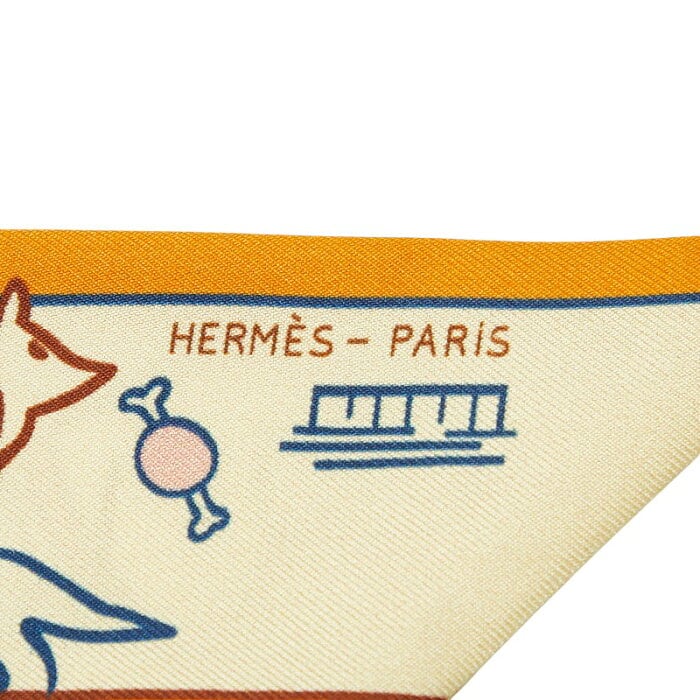 エルメス Les Chiens Parisiens パリジャンの犬 スカーフ イエロー オレンジ シルク レディース HERMES 【中古】