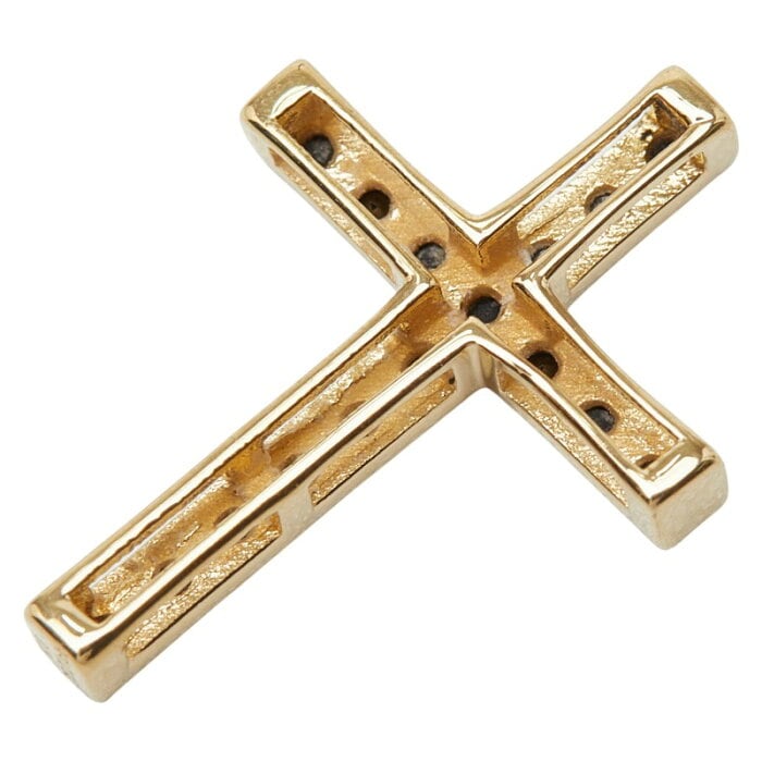 K18YG イエローゴールド ブラックダイヤ0.21ct クロスモチーフ ペンダントトップ ネックレス レディース 【中古】