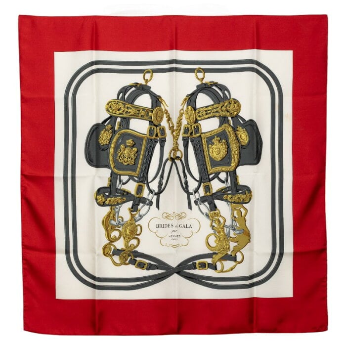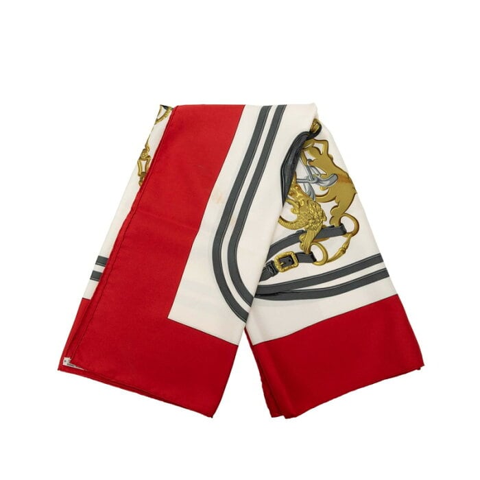 エルメス カレ90 BRIDES de GALA 式典用の馬勒 スカーフ レッド マルチカラー シルク レディース HERMES 【中古】