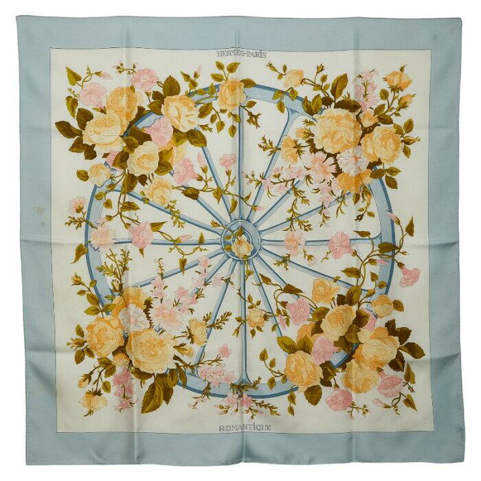 エルメス カレ90 ROMANTiQUE スカーフ ライトブルー マルチカラー レディース HERMES 【中古】