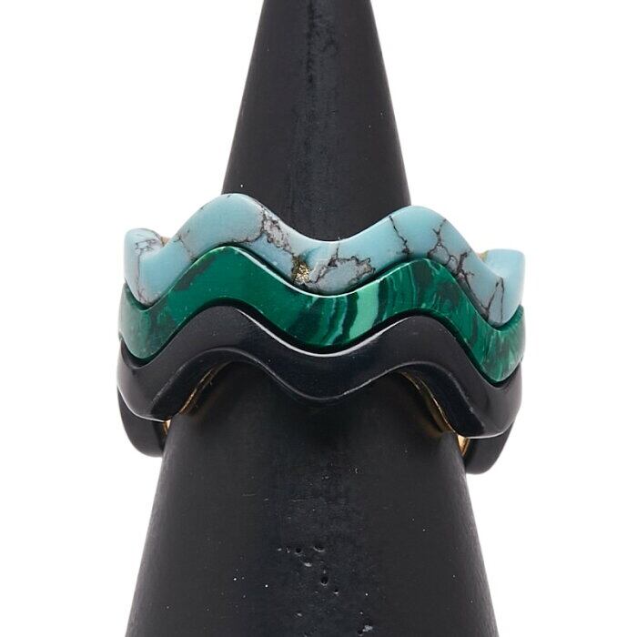 フェンディ リング 指輪 3点セット サイズ:S ゴールド グリーン ブラック ライトブルー メッキ レディース FENDI 【中古】