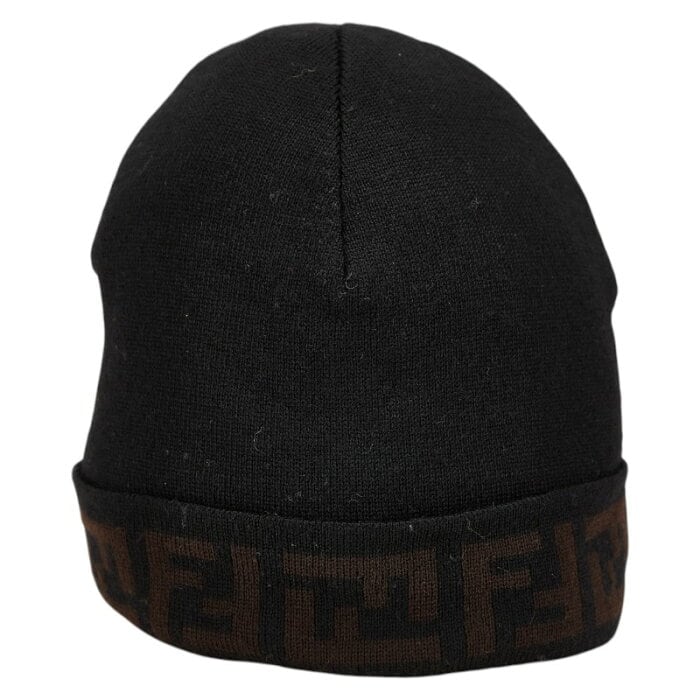 フェンディ ズッカ ニットキャップ ニット帽 ブラック ブラウン ウール レディース FENDI 【中古】
