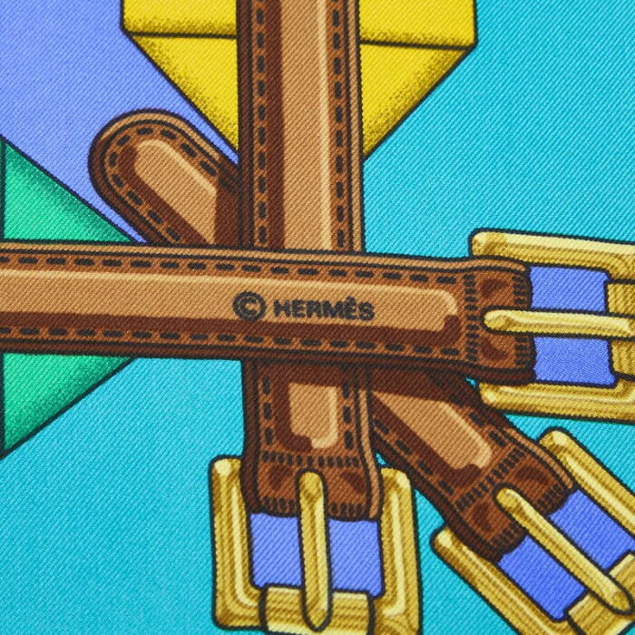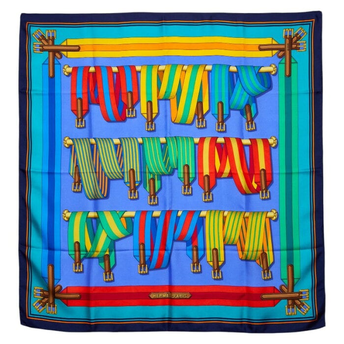 エルメス カレ90 Les Sangles スカーフ ブルー マルチカラー レディース HERMES 【中古】