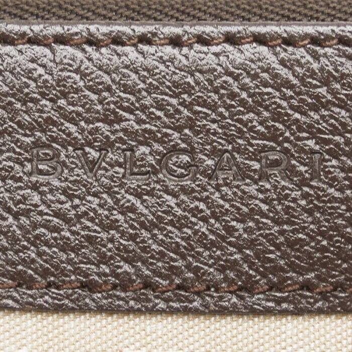 ブルガリ ロゴマニア ショルダーバッグ ベージュ ブラウン キャンバス レザー レディース BVLGARI 【中古】
