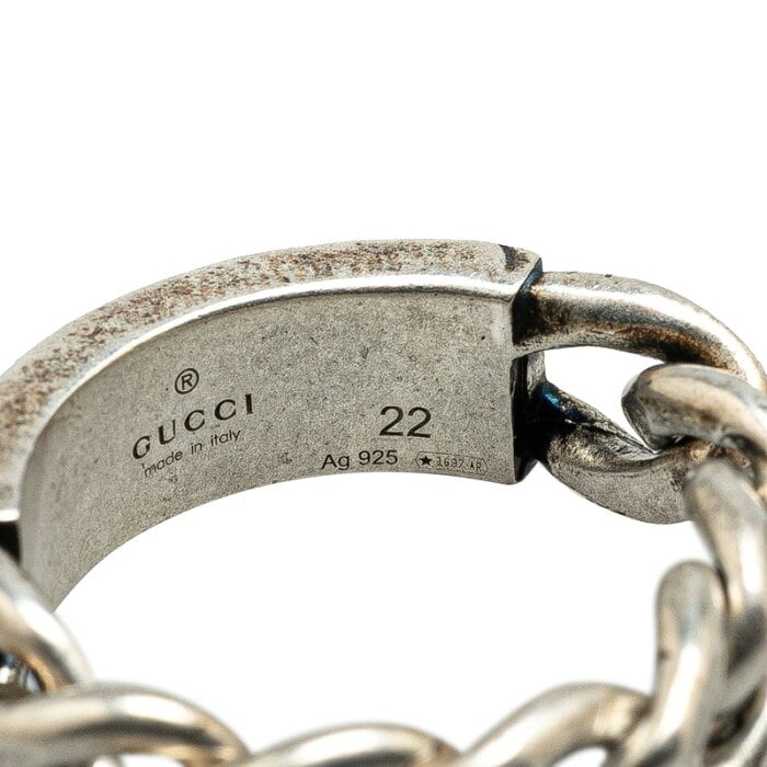 グッチ ゴルメットチェーン ロゴプレート リング 指輪 #22 ターコイズブルー SV925 シルバー エナメル メンズ GUCCI 【中古】