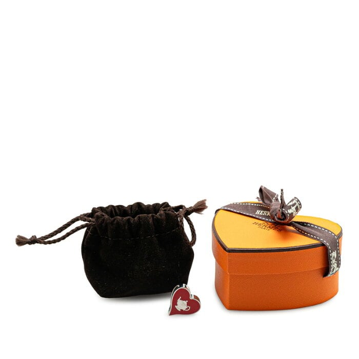 エルメス ハート モチーフ ティータイム スカーフリング レッド シルバー メタル レディース HERMES 【中古】