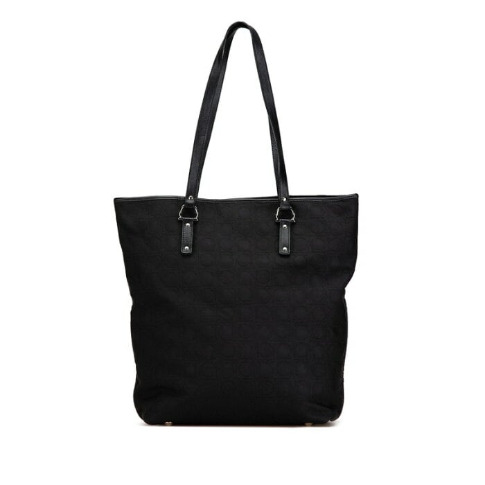 サルヴァトーレフェラガモ ガンチーニ トートバッグ AU-21 4909 ブラック キャンバス レザー レディース Salvatore Ferragamo 【中古】