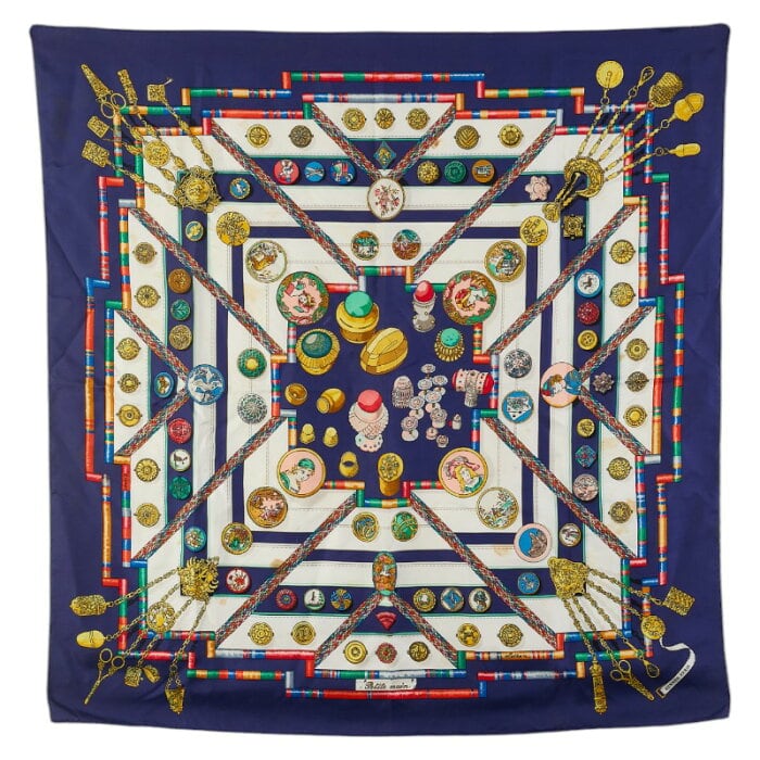 エルメス カレ90 Pelile main お針子さん スカーフ ネイビー マルチカラー シルク レディース HERMES 【中古】