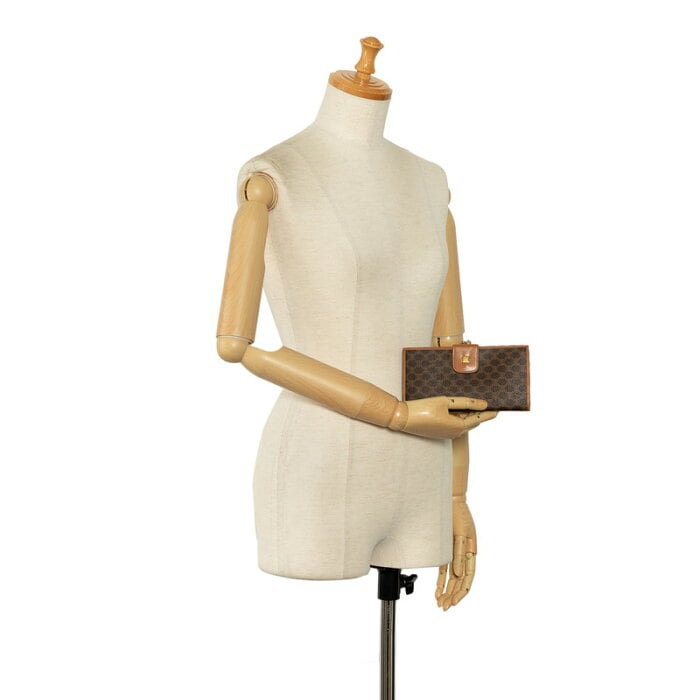 セリーヌ マカダム がま口 長財布 ブラウン PVC レザー レディース CELINE 【中古】