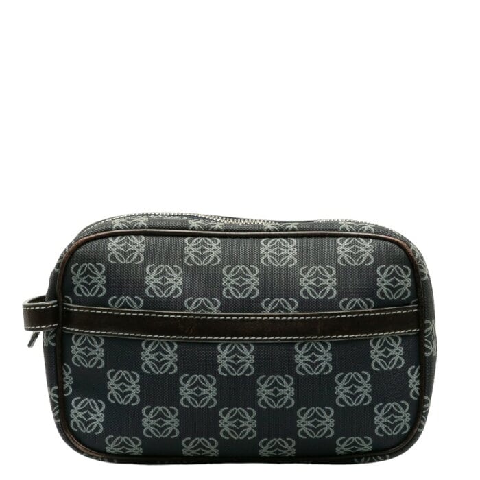 ロエベ アナグラム ポーチ ネイビー ブラウン PVC レザー レディース LOEWE 【中古】