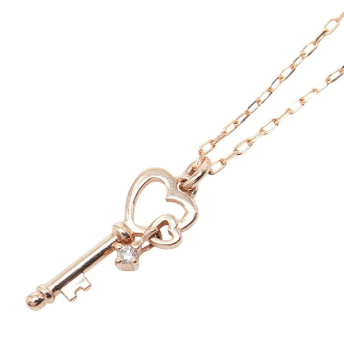 ヨンドシー K10PG ピンクゴールド ダイヤ ハート型キーモチーフ ペンダント ネックレス レディース 4℃ 【中古】