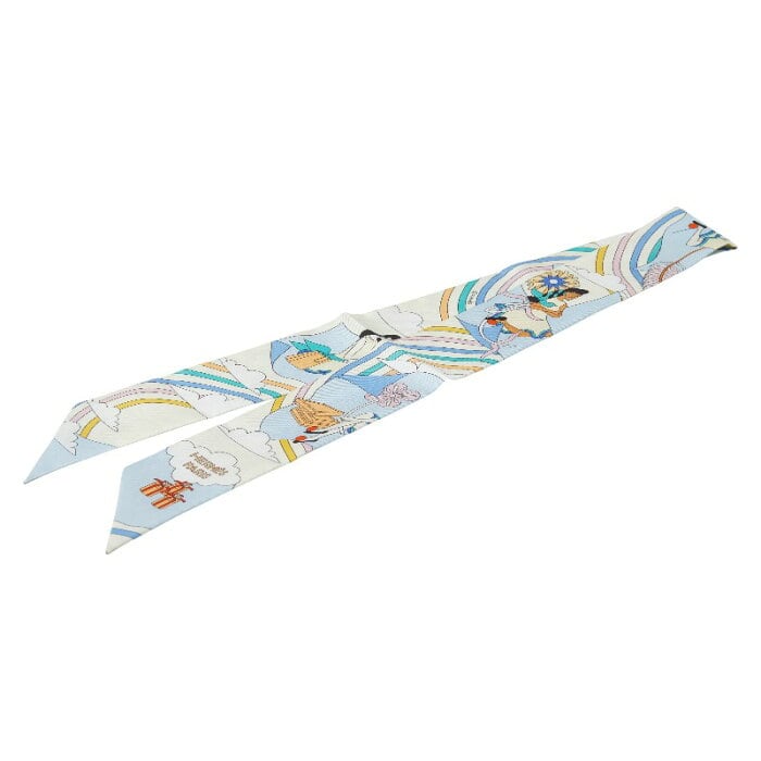 エルメス ツイリー CARRES VOLANTS 空飛ぶカレ スカーフ ホワイト マルチカラー レディース HERMES 【中古】