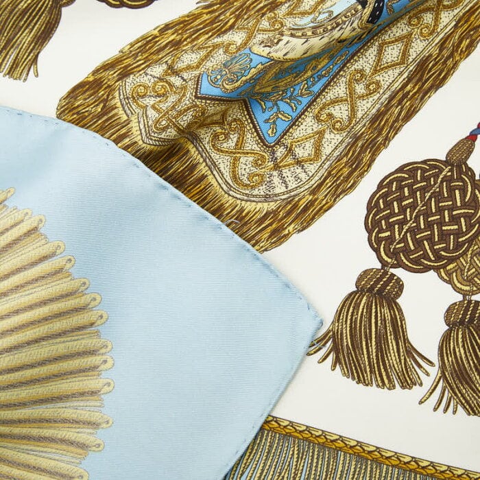 エルメス カレ90 Poste et Cavalerie サーベル飾袋 スカーフ ブルー マルチカラー シルク レディース HERMES 【中古】