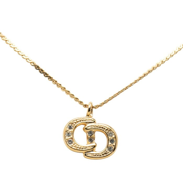 ディオール CDロゴ ラインストーン ネックレス ゴールド メッキ レディース Dior 【中古】