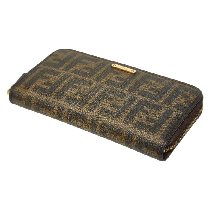 フェンディ ズッカ ラウンドファスナー 長財布 8M0299 ブラウン PVC レディース FENDI 【中古】