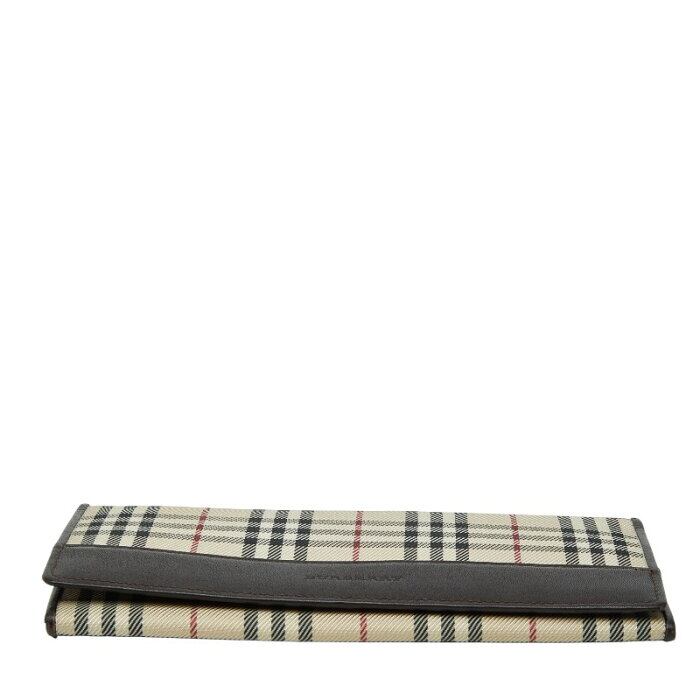 バーバリー ノバチェック 長財布 ベージュ ブラウン ナイロン レザー レディース BURBERRY 【中古】