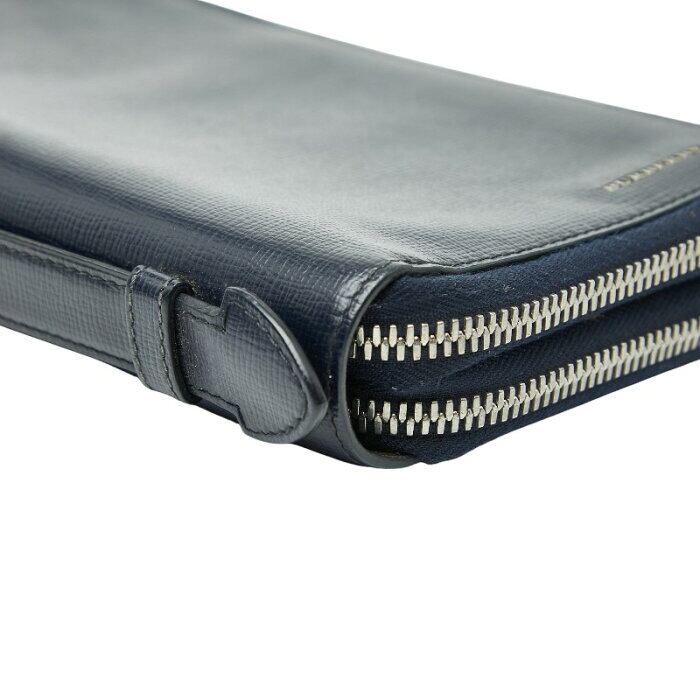 バーバリー オーガナイザー トラベルケース 長財布 ネイビー レザー メンズ BURBERRY 【中古】