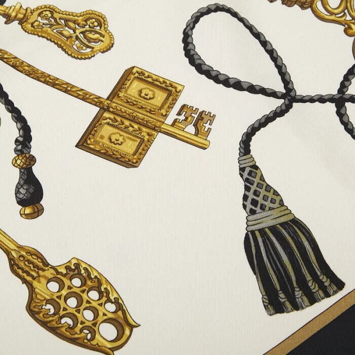 エルメス カレ90 LES CLES 鍵 スカーフ ブラック ゴールド シルク レディース HERMES 【中古】