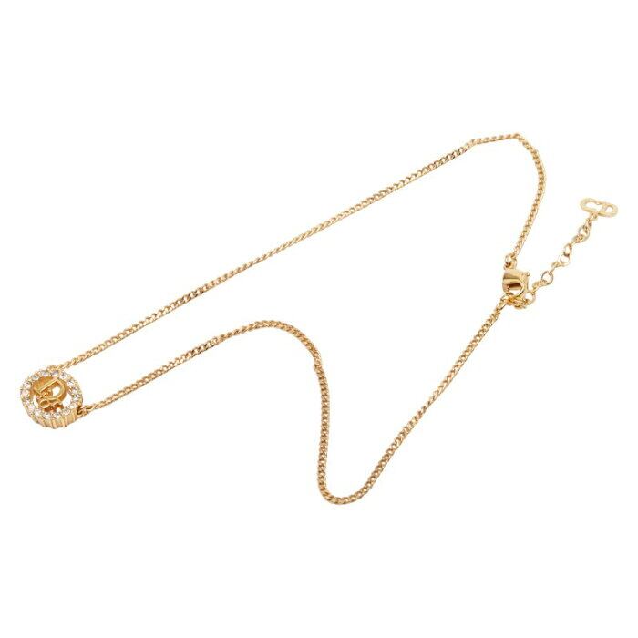 ディオール ロゴ ネックレス ゴールド メッキ ラインストーン レディース Dior 【中古】