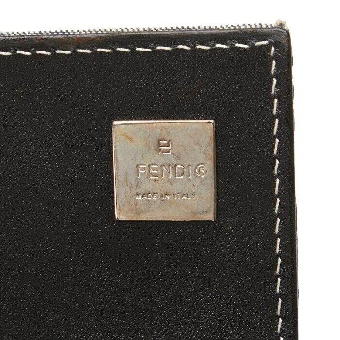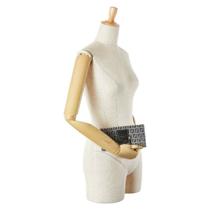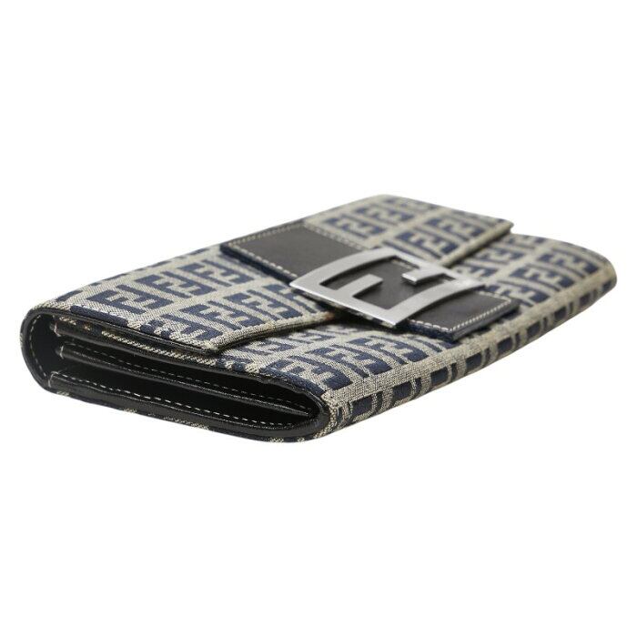 フェンディ ズッカ 長財布 グレー ネイビー キャンバス レザー レディース FENDI 【中古】