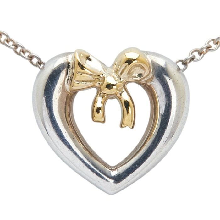ティファニー ハート リボン モチーフ ネックレス シルバー ゴールド SV925 シルバー K18 ゴールド コンビ レディース TIFFANY&Co. 【中古】