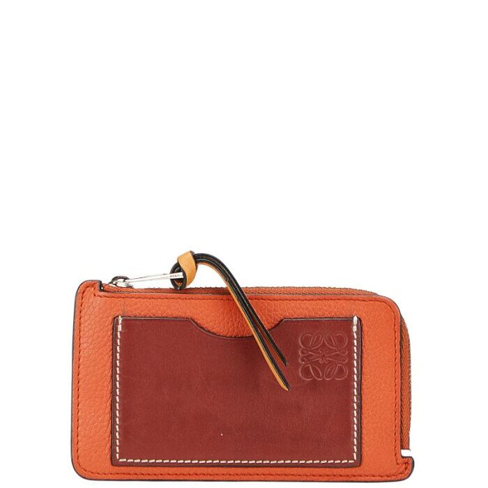 ロエベ アナグラム コインケース 小銭入れ オレンジ レッド レザー レディース LOEWE 【中古】