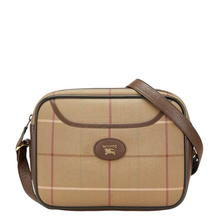 バーバリー チェック ショルダーバッグ カーキ ブラウン キャンバス レザー レディース BURBERRY 【中古】