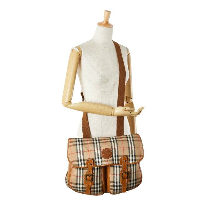 バーバリー ノバチェック シャドーホース 斜め掛け ショルダーバッグ ベージュ マルチカラー キャンバス レザー レディース BURBERRY 【中古】