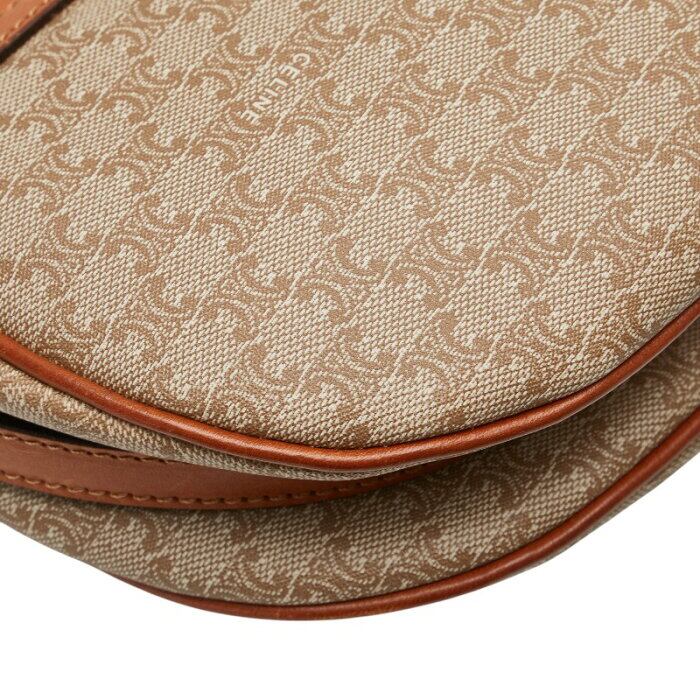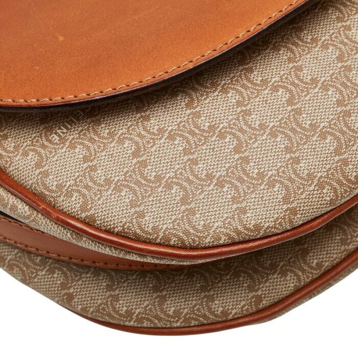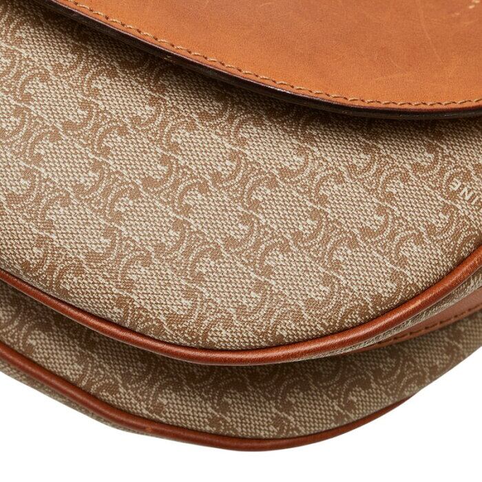 セリーヌ マカダム ショルダーバッグ ベージュ ブラウン PVC レザー レディース CELINE 【中古】