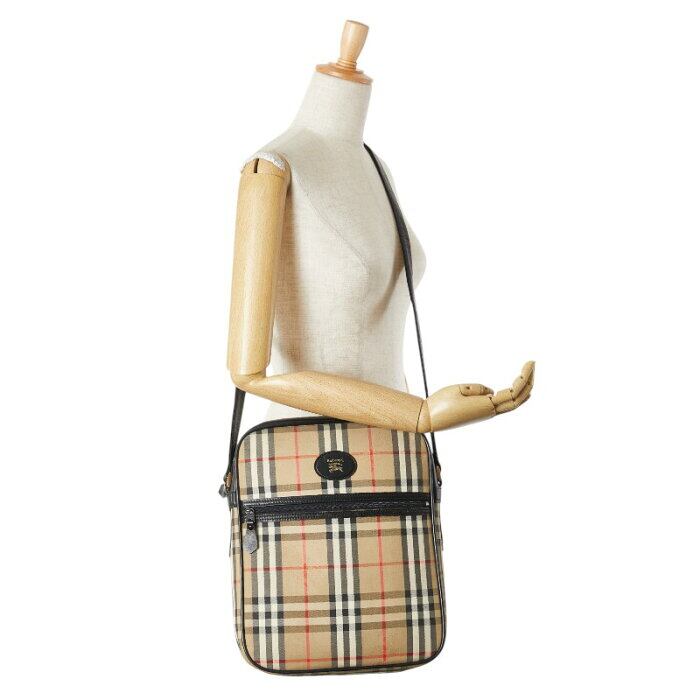 バーバリー ノバチェック シャドーホース 斜め掛け ショルダーバッグ ベージュ マルチカラー キャンバス レザー レディース BURBERRY 【中古】
