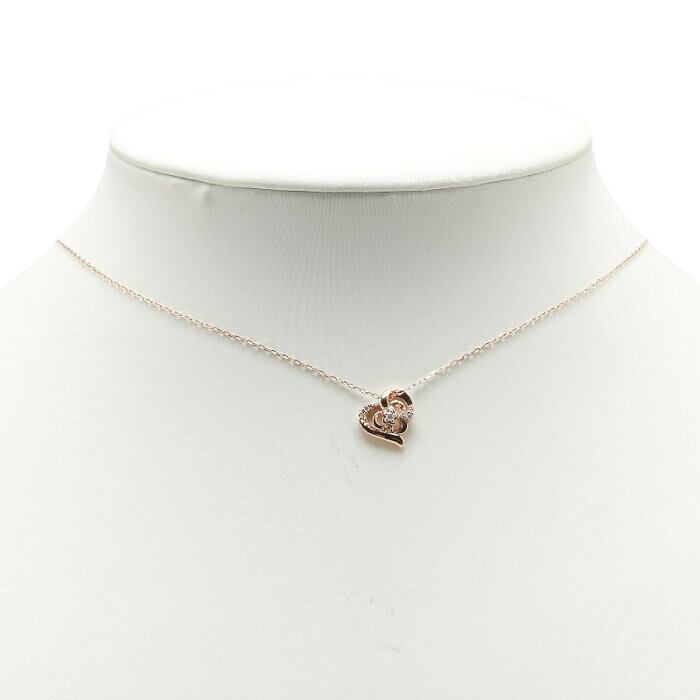 ヨンドシー K10PG ピンクゴールド ダイヤ ハート モチーフ ペンダントネックレス レディース 4℃ 【中古】