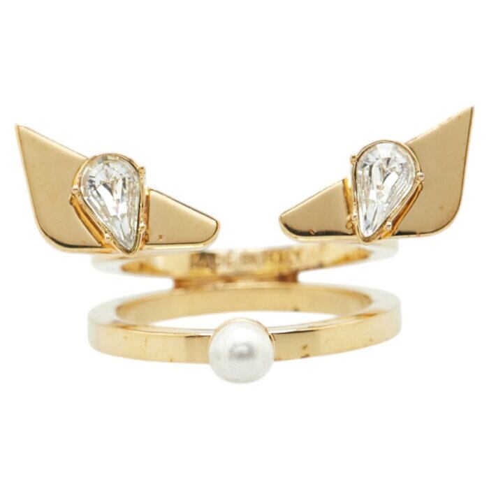 フェンディ バグズアイ モンスター リング 指輪 #S ゴールド メッキ フェイクパール レディース FENDI 【中古】